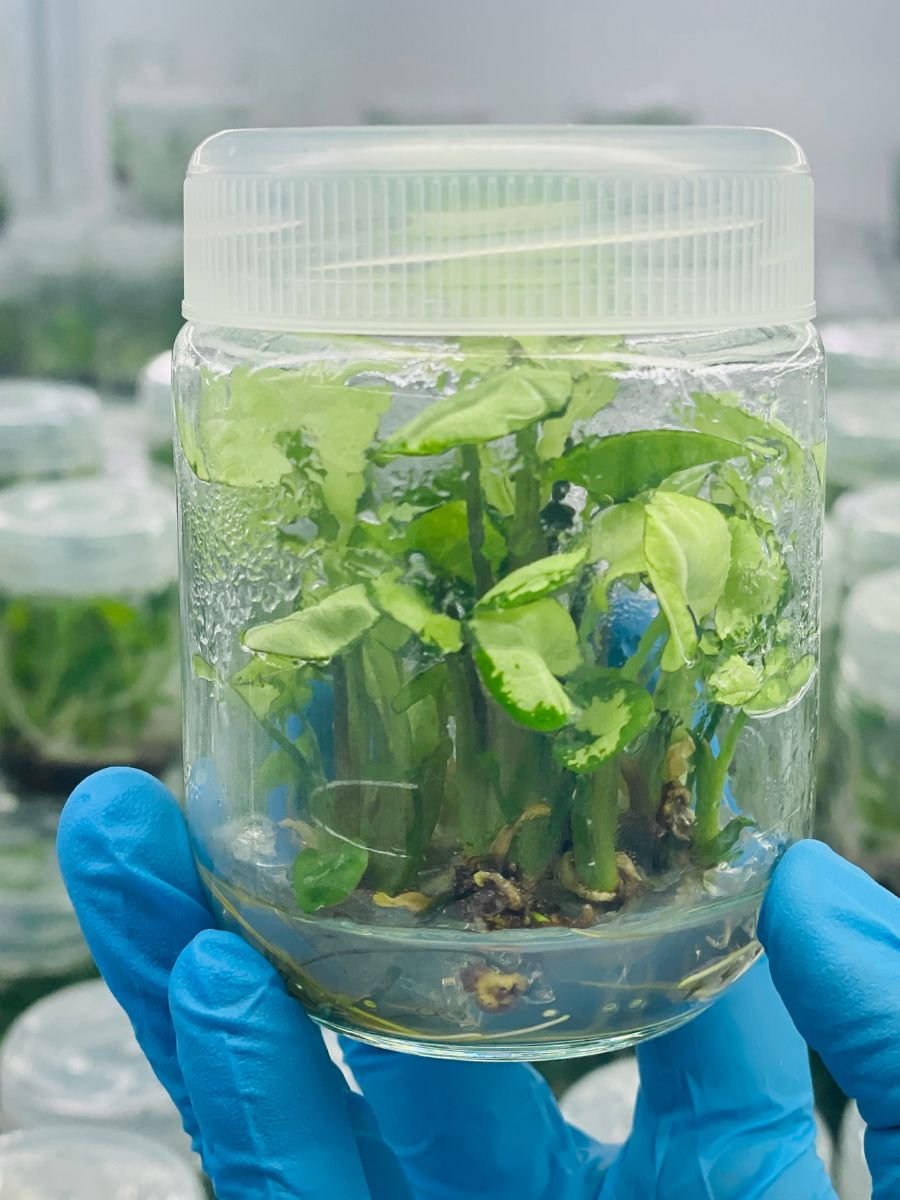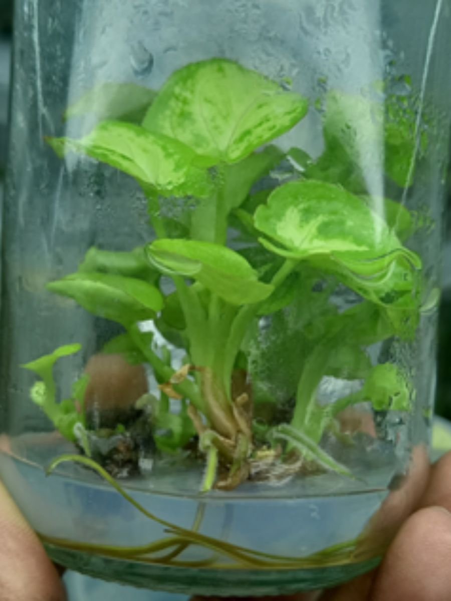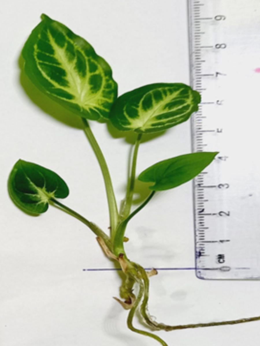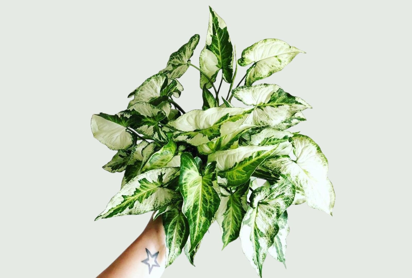 Syngonium ‘Batik Variegata’ is a distinctive ornamental plant featuring patterned green leaves with creamy variegation, admired for its artistic markings and decorative indoor appeal.