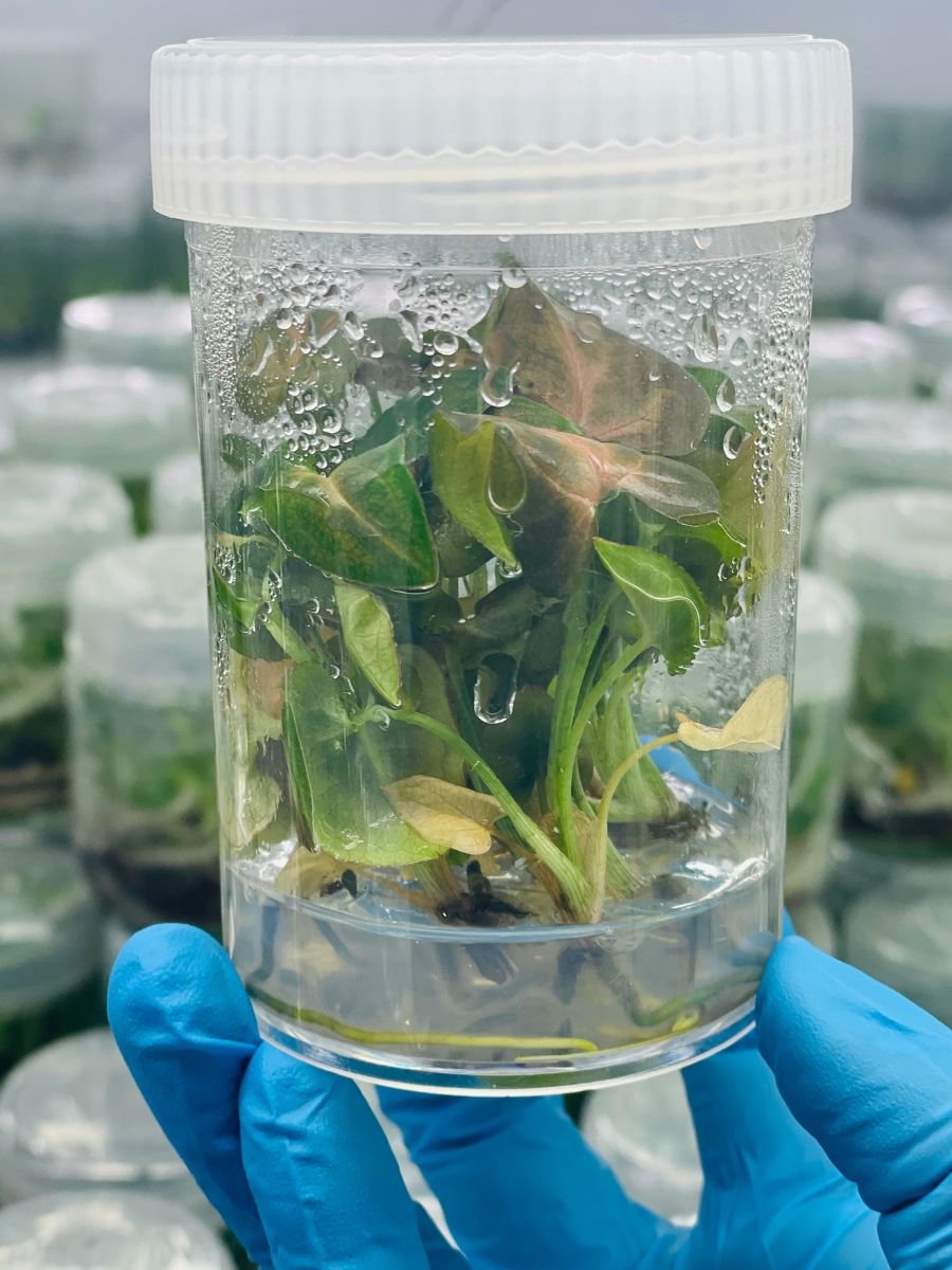 Syngonium ‘Godzilla’ is a unique ornamental plant characterized by thick, heavily textured leaves with a rugged appearance, prized for its bold form and distinctive foliage.