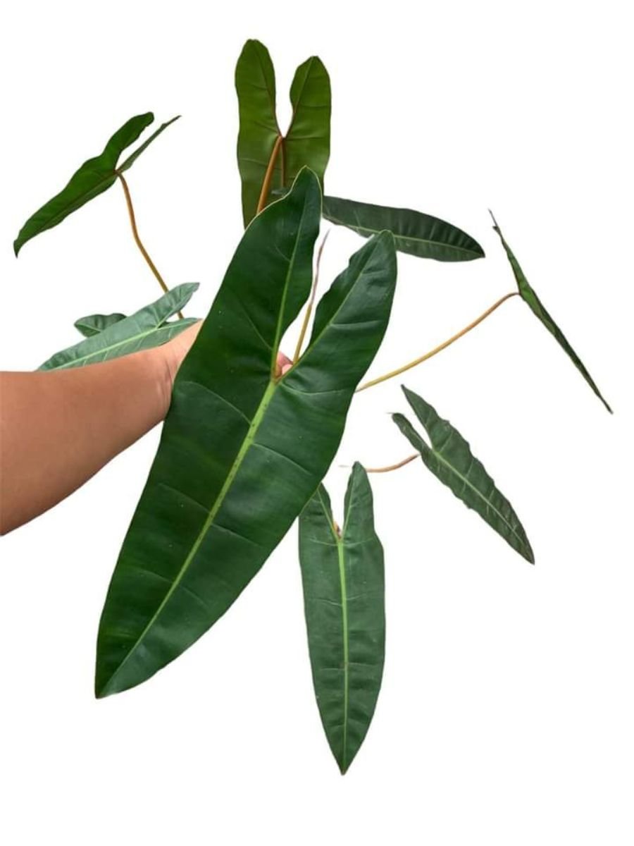 Philodendron Orange Billietiae is a rare ornamental plant distinguished by elongated green leaves and vibrant orange petioles, prized for its bold structure and striking tropical appearance.