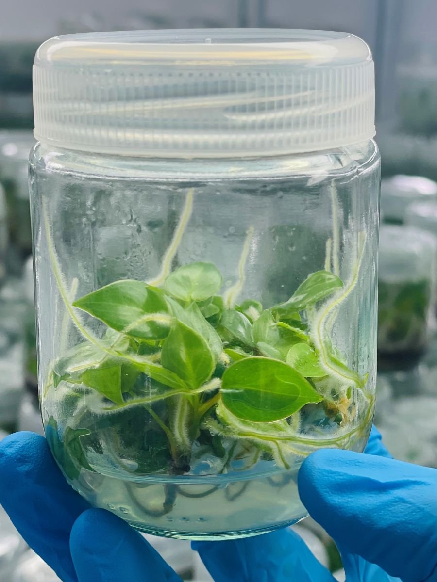 Philodendron Joepii is a rare ornamental plant distinguished by its uniquely shaped leaves with elongated lobes, prized for its unusual form and exotic visual appeal.